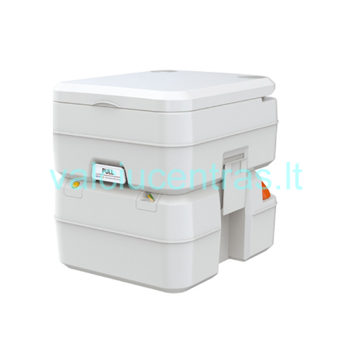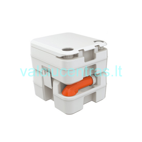Nešiojamas cheminis tualetas, pagamintas iš aukšto tankio polietileno, su erdvia sėdyne, tvirtu dangčiu ir storomis sienelėmis, galinčiomis atlaikyti iki 200 kg svorį.