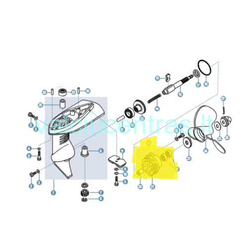 Parsun F2.6 BMS/BML apatinės kojos dalies dangtelis - guolių laikiklis. Tinka ir Yamaha F2.5 modeliui nuo 2003 metų ir naujesniems.
