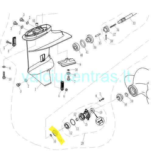 Pakabinamo valties variklio Parsun/Tohatsu reduktoriaus atbulinės pavaros dantratis