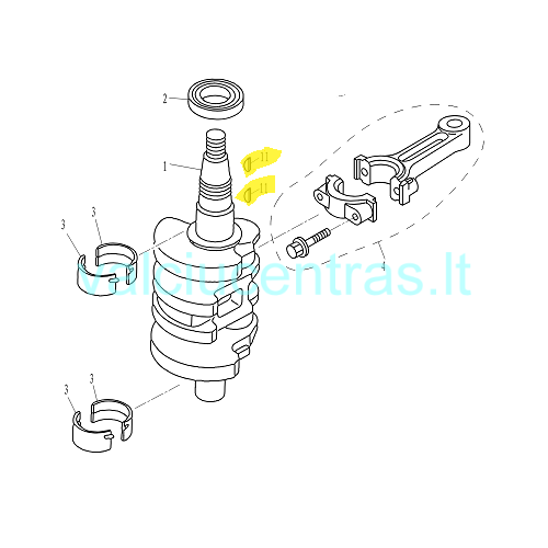 Pakabinamo benzininio variklio Parsun alkūninio veleno detalė.