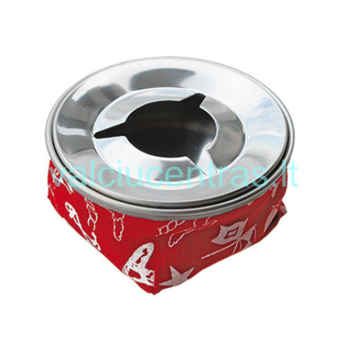 Mėlyna peleninė. Pagaminta iš nerūdijančio plieno, padengta jūrinio stiliaus audiniu.