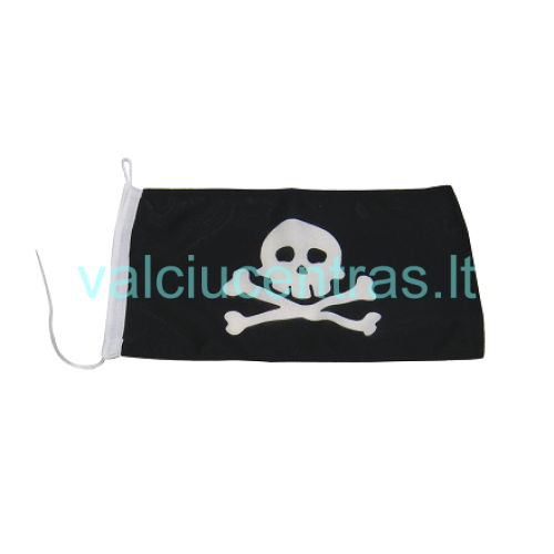 Piratų vėliava pagaminta iš poliesterio, kuris yra sintetinis pluoštas, jis nesiglamžo, yra atsparus trinčiai, beveik nesugeria drėgmės, todėl greit išdžiūsta.