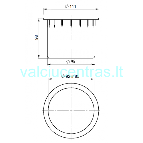 - Vidinis diametras: viršutinėje dalyje 92mm; apatinėje dalyje 85mm