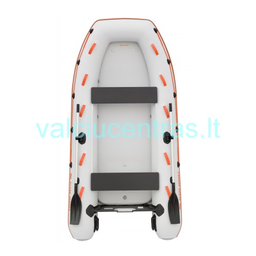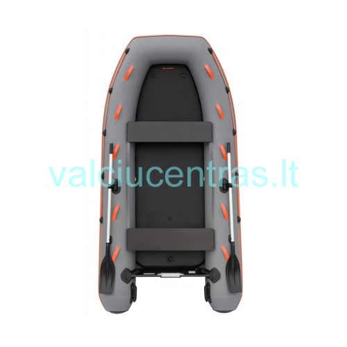 - Patvarus PVC audinys - naudojamas 950 g/m2 tankio PVC audinys užtikrina didelį stiprumą ir atsparumą pažeidimams, užtikrina valties ilgaamžiškumą ir papildomą saugumą.