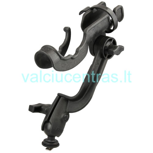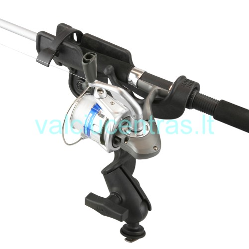 Meškerės laikiklio komplektas tinkantis net ir didelėms meškerems. Į visas puses besisukantis laikiklis išlaiko meškerę plaukiant į kitą vietą arba palenkus laiko į viršų. Tvirtinimas prie valčių, katerių ar laivų borto galimas šonu bei plokštuma. C dydžio kamuoliukas.