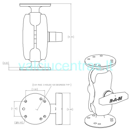 Su dvigubu rutulių tvirtinimu laikiklis užtikrina mobilumą bei lankstumą 360 laipsnių. Laikiklis tarp dviejų pagrindų rutulių iš kurių vienas tvirtinamas prie plokštumos ar borto o kitas rutulys prie norimo įrenginio.