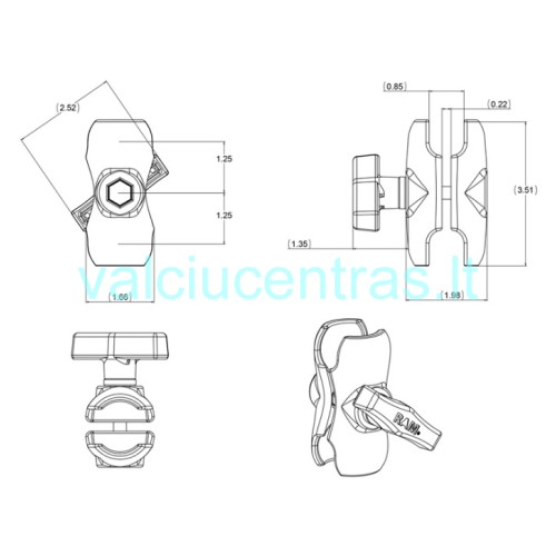 Su dvigubu rutulių tvirtinimu laikiklis užtikrina mobilumą bei lankstumą 360 laipsnių. Laikiklis tarp dviejų pagrindų rutulių iš kurių vienas tvirtinamas prie plokštumos ar borto o kitas rutulys prie norimo įrenginio.