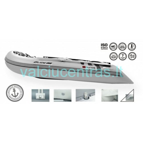 Pripučiama valtis su aliuminio dugnu ir pripučiamu kyliu, mėgstantiems komfortą ir kokybę. Stacionarus, tvirtas transas leidžia kabinti benzininį variklį iki 10 AG.
