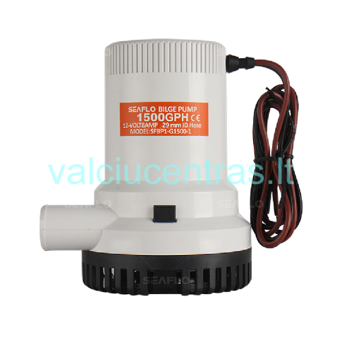 - 1.500 GPH; 5700 l/h 12V; 8.0A; tinkamas žarnos diametras - 29mm