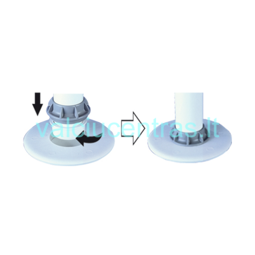 Apatinis pagrindas tvirtinamas prie grindų, o viršutinis pagrindas tvirtinamas prie stalviršio.