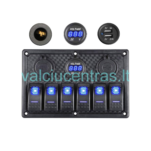 6-ių jungiklių skydelis su voltmetru/usb/rozete