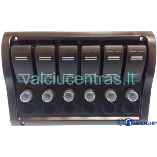 Skydelyje sumontuota 6 jungikliai. Kiekvienas jungiklis turi po saugiklį.