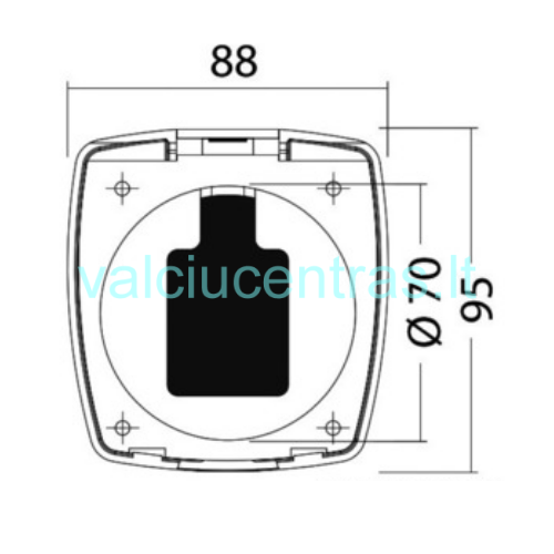 - Išoriniai matmenys: 88 × 95 mm