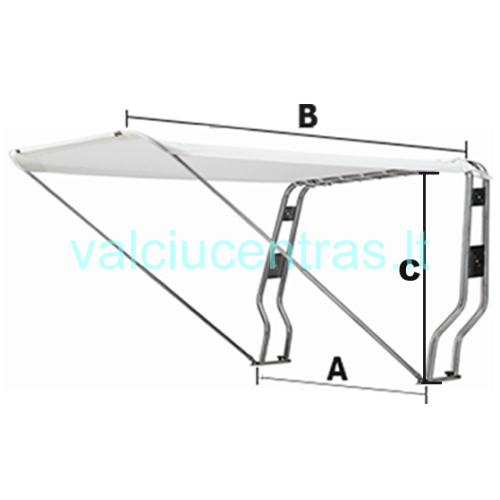 Suskleidžiamas bimini stogelis. Tvirtas, aukštos kokybės bimini stogelis, pukiai tinkantis mažesnėms atviroms valtims.