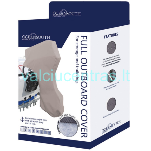 Aukštos kokybės Oceansouth ATLAS variklio tentas, skirtas pilnai uždengti visą variklį. Idealiai tinka transportavimui, apsaugai nuo saulės, lietaus, dulkių.
