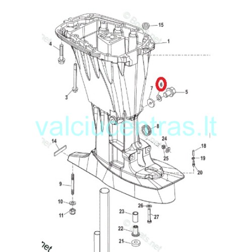 Mercury variklio tepalo išleidimo varžto tarpinė.