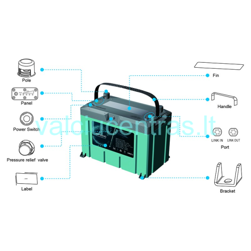 Akumuliatorių lengva transportuoti, kadangi jo svoris tik 12.5 kg, o talpa 100Ah.