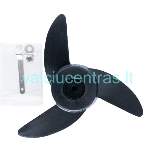 Trijų menčių sraigtas elektriniams valčių varikliams. Tinka daugeliui gamintojų ir modelių.