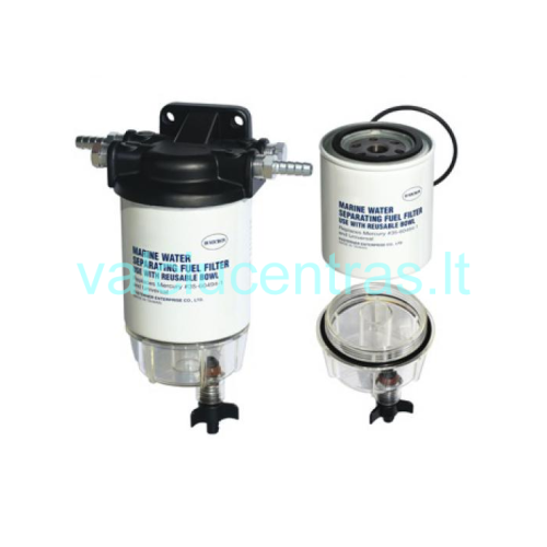 Universalus kuro - vandens separatorius su keičiamu elementu ir skaidriu rezervuaru apačioje. Skirtas naudojimui su pakabinamais benzininiais varikliais.