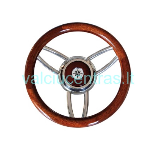 Trijų stipinų, 350 mm skersmens vairas. Pagamintas iš nerūdijančio plieno, itin tvirtas, ir su patogumą suteikiančiais iškilimais. Padengtas medžio imitacija.