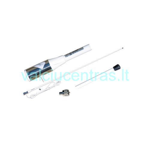 VHF antena su tvirtu antgaliu, pagamintu iš nerūdijančio poliruoto plieno.