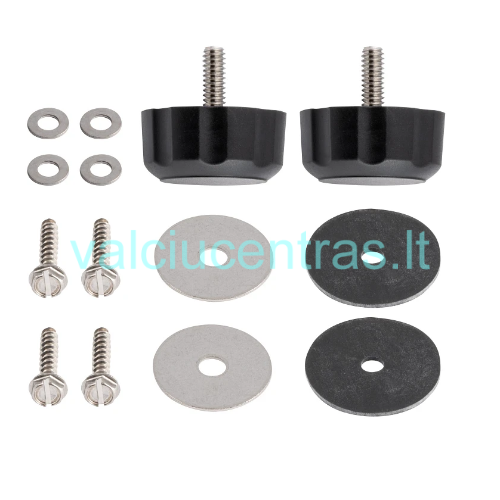 Komplektą sudaro lankelis, veržlės, rankenėlės